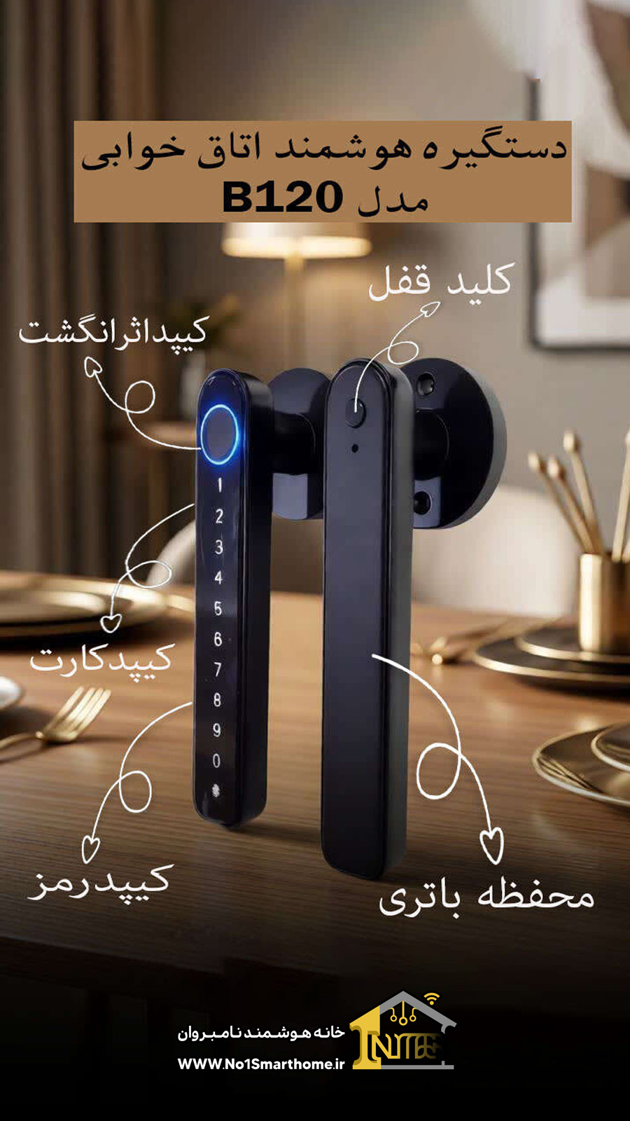 - ویدئو معرفی دستگیره هوشمند اتاق خوابی مدل B120
